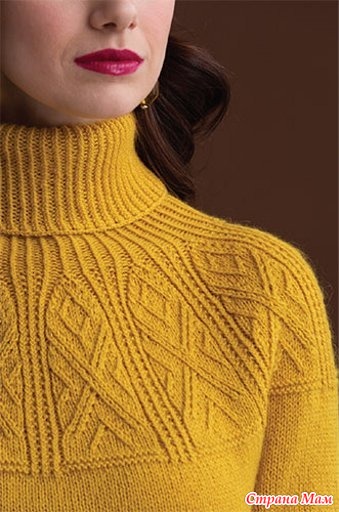 Свитер вяжется снизу вверх с рисунком со жгутами на резинке и кокетке.