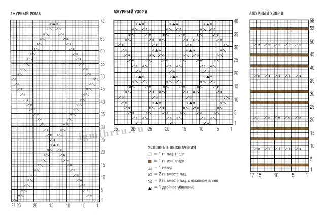 Ажурный узор А: 25 п. и 33 р. = 10 х 10 см.