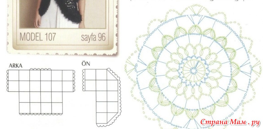 В последнем ряду каждого мотива делать соединение с другим мотивом. Связать перед и спинку согласно схеме, перейти обвязку пряжей «DECOFUR» краев изделия и рукавов. Обвязать: рукава 80-ю петлями, полочки -115-ю петлями, полы спинки - 80-ю петлями, заднюю горловину - 50-ю петлями, связать 5-6 рядов пряжей «DECOFUR»