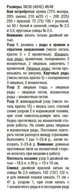 Земляничная поляна: уютный пушистый пуловер из мохера и шелка вяжется в две нити. Края окантованы широкой резинкой, а забавный жаккардовый рисунок выполняется в норвежской технике.