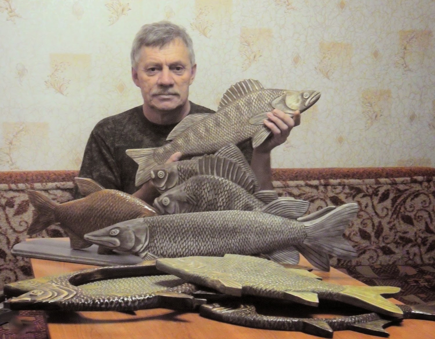 Есть у меня ещё одно хобби, о котором я уже рассказывал на страницах своего сайта - это резьба по дереву и изготовление разных резных поделок в виде рыбешек, которые нравятся многим рыболовам-любителям. Заказы есть и летом, но заниматься их изготовлением бывает некогда, а сейчас как раз времени, хоть отбавляй, поэтому я с удовольствием выполню заявки, если они последуют.