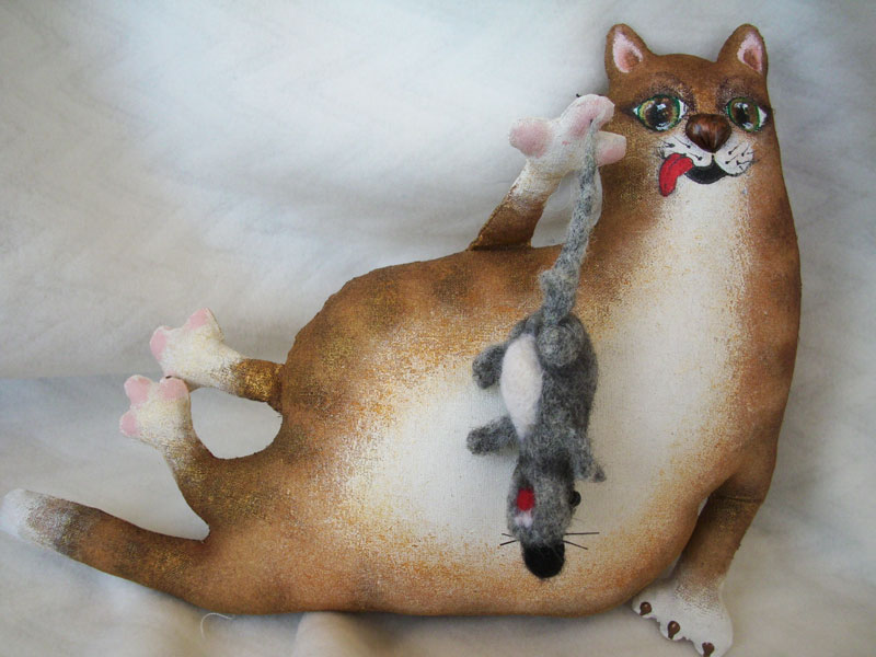 Этот потешный кот давно путешествует по интернету. Кто автор его в текстильном варианте - не знаю. Выкройку нашла давно, и вспомнить где я ее нашла не могу, к моему огромному сожалению.
