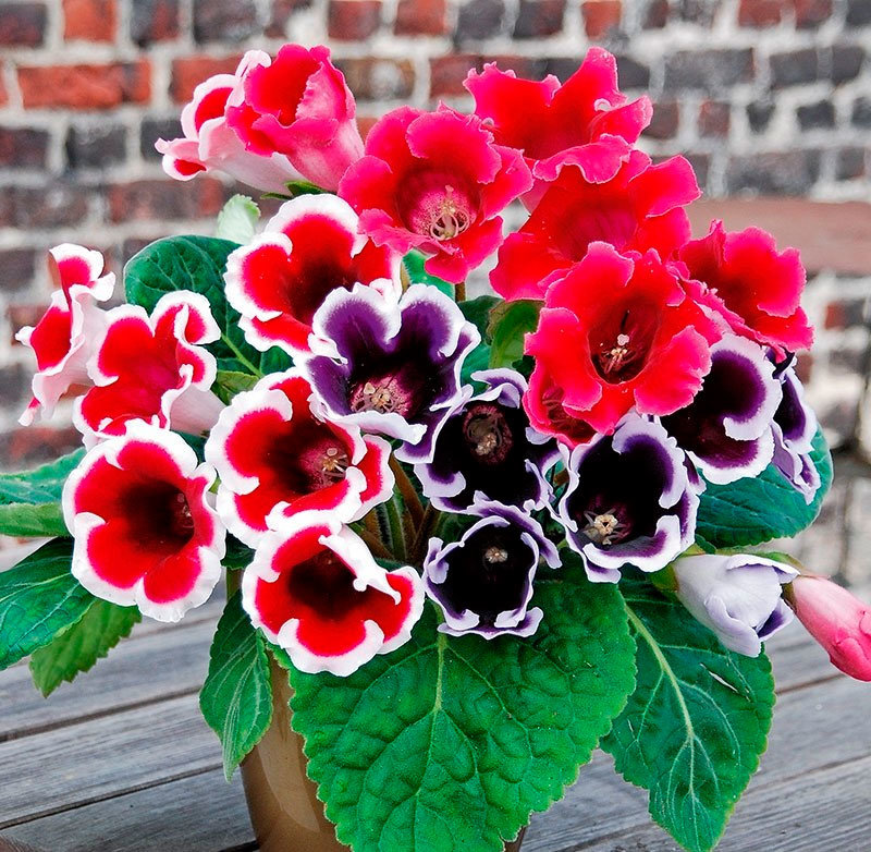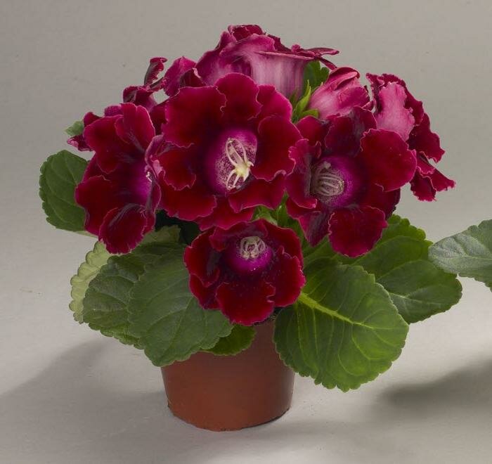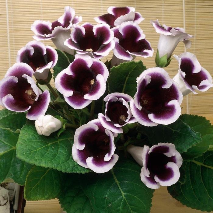 Популярность и любовь цветоводов Глоксиния комнатная заслужила благодаря длительному и обильному цветению, впечатляющим эффектным цветкам и простоте в уходе. Большие яркие воронкообразные цветы культуры поражают разнообразием цветовой гаммы.Они включают в себя множество оттенков синего, бордового, малинового, красного, белого, фиолетового и даже почти черного, часто с контрастным рисунком. По форме простые или махровые, часто душистые.