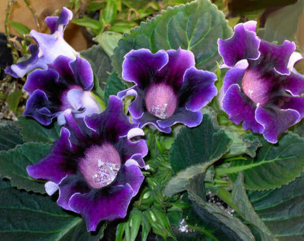 Каждый год селекционеры дарят нам все новые эффектные гибриды и сортовые формы этого великолепного растения.От небольших овальных клубнелуковиц отходят стебли с крупными овальными бархатистыми листьями на коротких мясистых черенках. Своим внешним видом Синнингия очень напоминает африканскую фиалку, но более крупного размера.