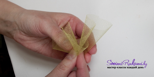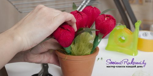 Полоской зеленой гофры тейпируем листочки и стебель.