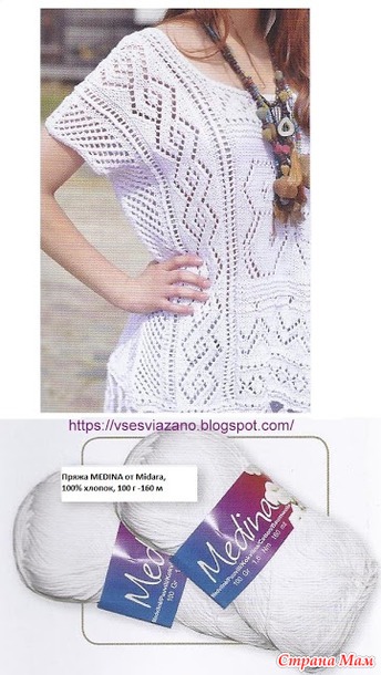 Блузка вяжется спицами, номер спиц не указан - думаем - 3- 3,5.