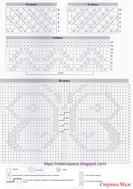 Все схемы узоров указаны на выкройке.