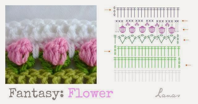 узор тюльпаны крючком. подробный МК