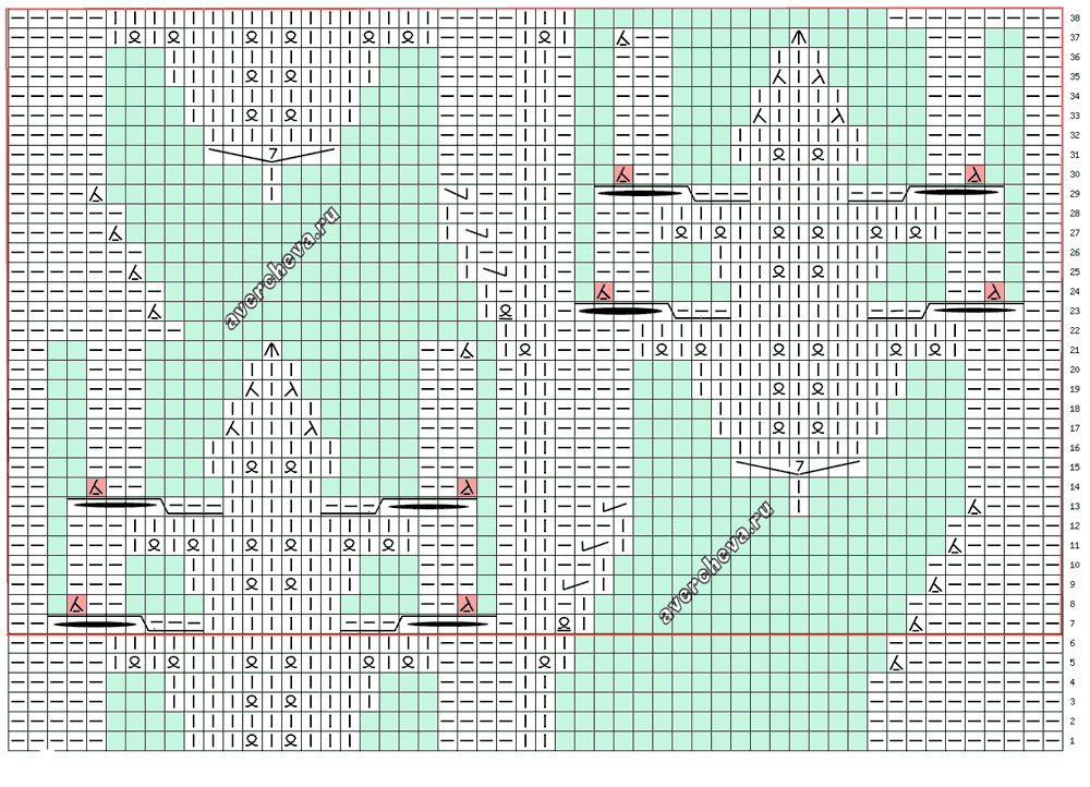 В высоту повторяем с 1-го по 38 ряд, затем повторяем с 7-го по 38 ряд.