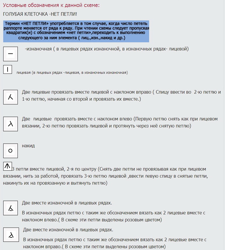 Для начала вязания наберите 28 петель + 2 кромочные и вяжите по схеме (клеточки голубого цвета в вязании не учитываются, просто пропускаем их)