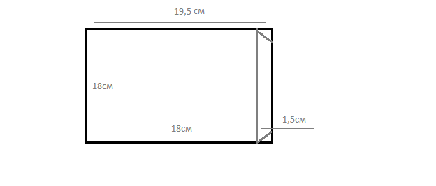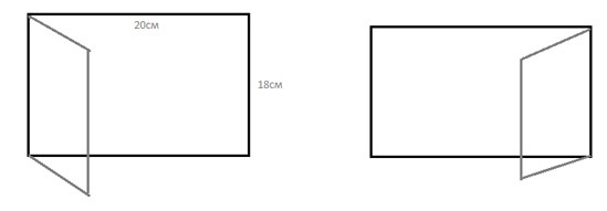 Так же как и в первом случае, страничка-основа у нас 18/20 см. Дополнительная страничка : отмеряем по ширине 18 см по длине 19,5. (про любые размеры вы помните?!)). Отступаем от края 1,5-2 см и бигуем (см рисунок выше). У нас получилась доп. страничка размером 18/18 см. Теперь осталось только склеить! "Хвостик" 1,5-2 см - это наша основа для склеивания.