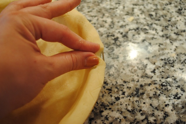 Оформляем край пирога по своему вкусу, "зубчиками" с помощью кончиков пальцев или вилкой.