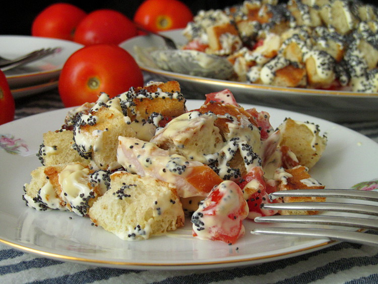 Далее выложить сухарики, полить майонезом и посыпать маком.