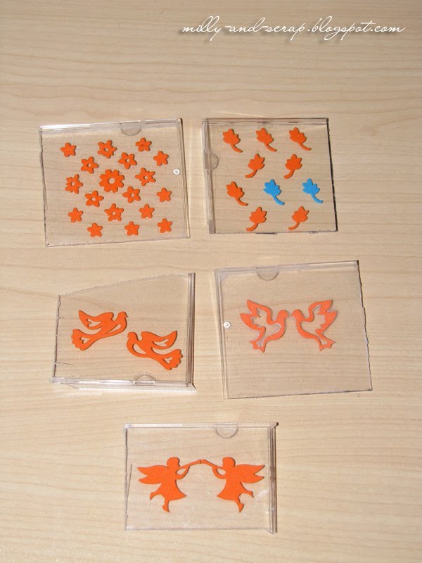 На принтере я распечатала нужные мне картинки, которые я решила превратить в штампы. Внимание - печатать нужно в зеркальном отражении! Потом эти картинки на клей-карандаш я приклеила на бумажную сторону коврика и аккуратно вырезала их макетным ножом. Вот и все - штампы готовы! Сначала для того чтобы ими пользоваться, я опять же на клей-карандаш приклеивала их к прозрачной коробочке из под CD, штамповала, потом отклеивала (клей-карандаш слабо держит), промывала, вытирала и складывала в коробочку. Но со временем мне надоело постоянно приклеивать их к основе, чтобы поработать. Решение было таким: берем мужскую силу 1 штуку, даем ему пластиковые коробочки от дисков, заранее размеченные на блоки под штампы, и ножовку по металлу (или чем там он еще сможет аккуратно распилить этот пластик). Коробочек от CD (двойных и прозрачных) у меня как раз к тому времени накопилось много, тк для экономии места в шкафу я все диски из них переложила в пластиковые банки для CD. Вот как выглядят пустые коробочки: