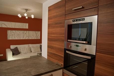 Новая кухня расположилась буквой U, старая была расположена буквой L. И несмотря на то, что здесь нет верхних шкафчиков, места для хранения больше. В образовавшуюся нишу были вставлены высокие шкафчики для хранения продуктов и других вещей. Вошли туда и холодильник и микроволновая печь.