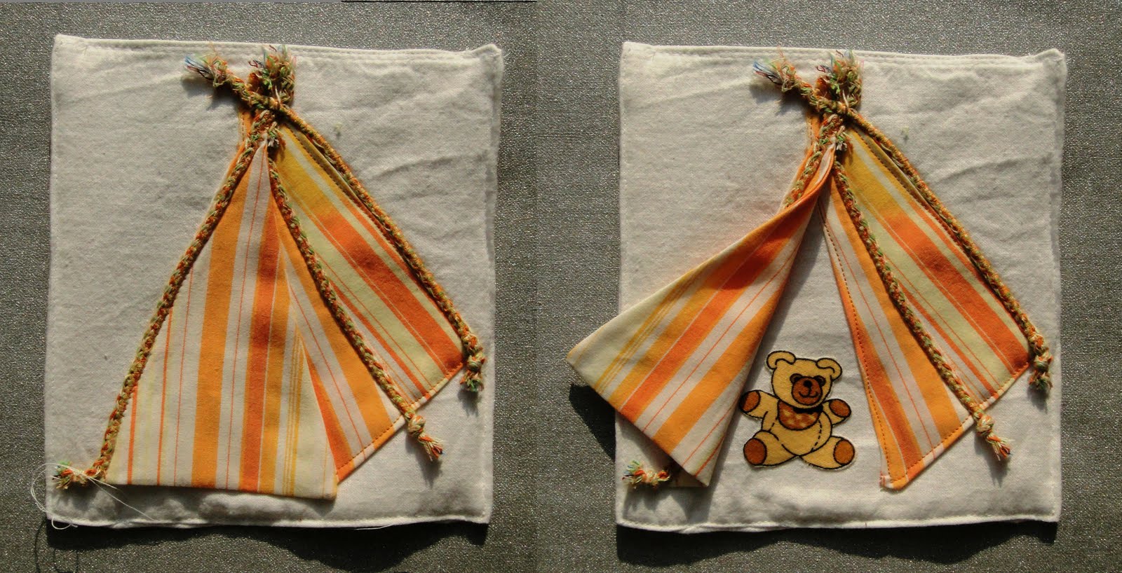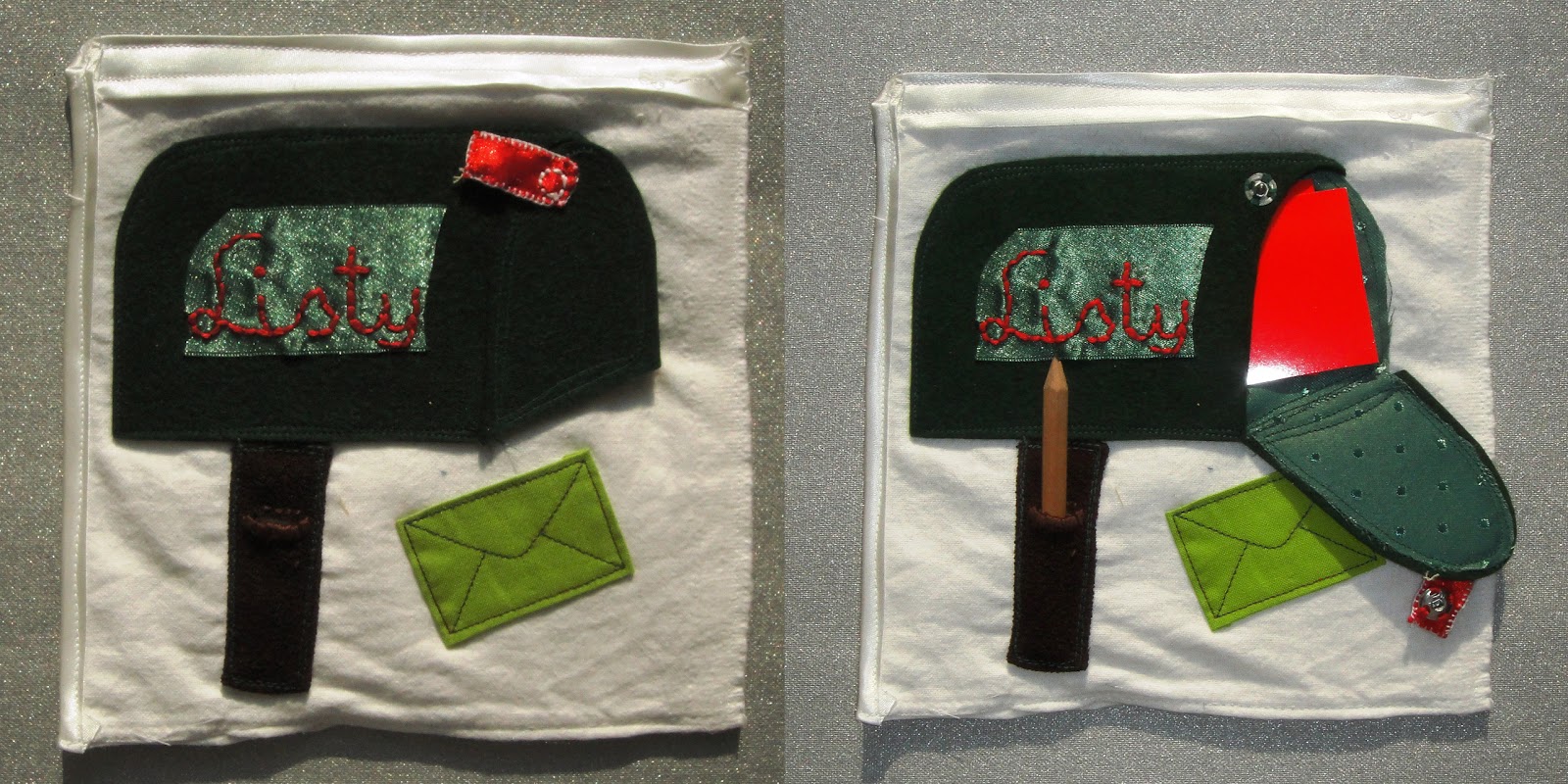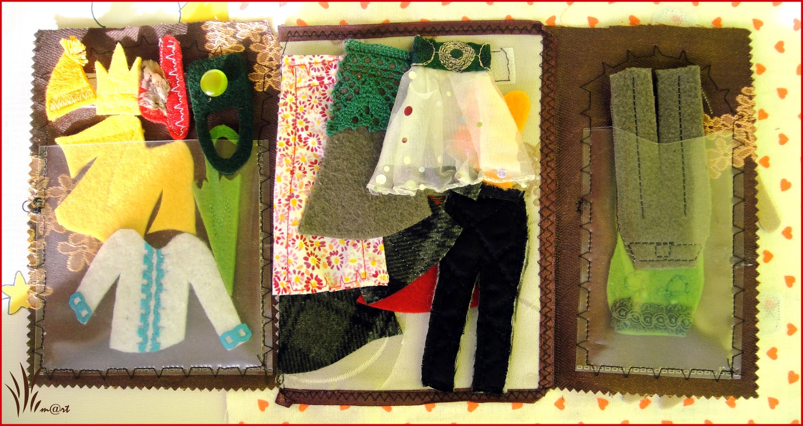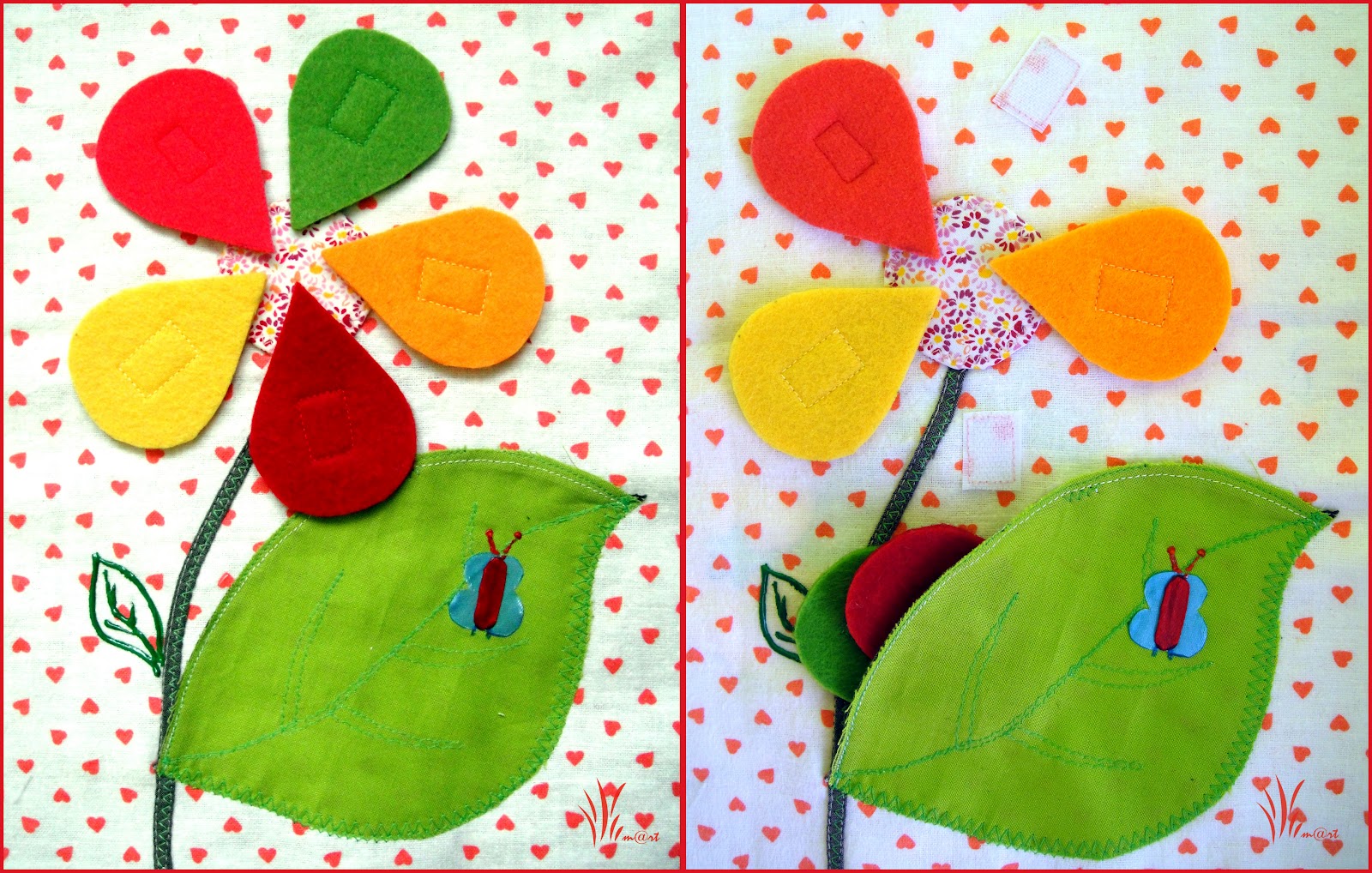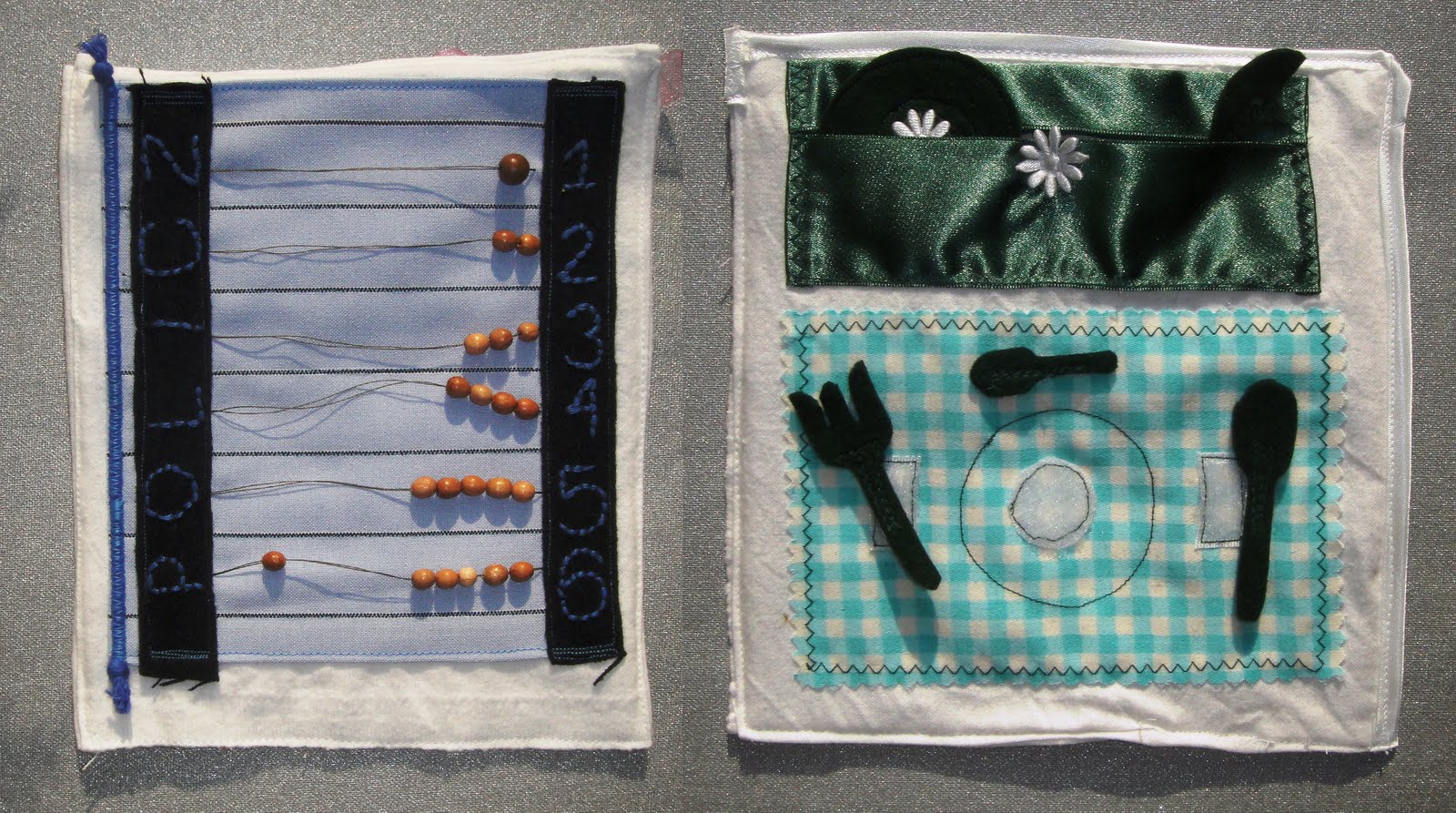 Все липучки к деталям пришиты таким образом, что колючие части липучек на коврике, а мягкие - на детальках.