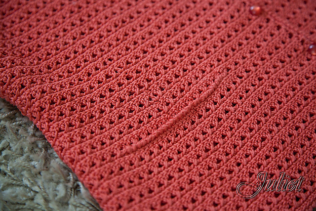 Узор очень простой - ряды столбиков без накида чередуются с рядами перекрещенных столбиков с накидом.