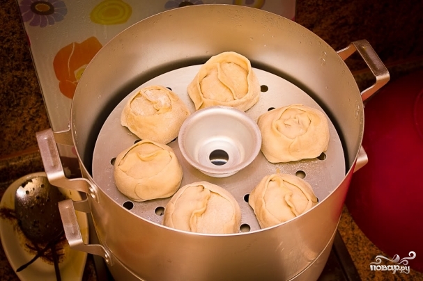 8. Вот такой традиционный вариант, как сделать манты с тыквой и мясом по-узбекски.