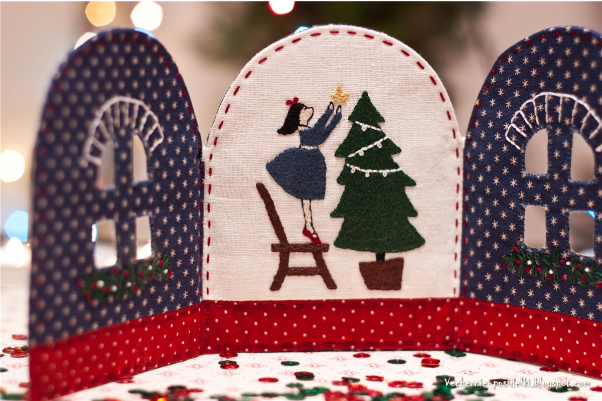 Here is my new Christmas decoration - embroidered screen.