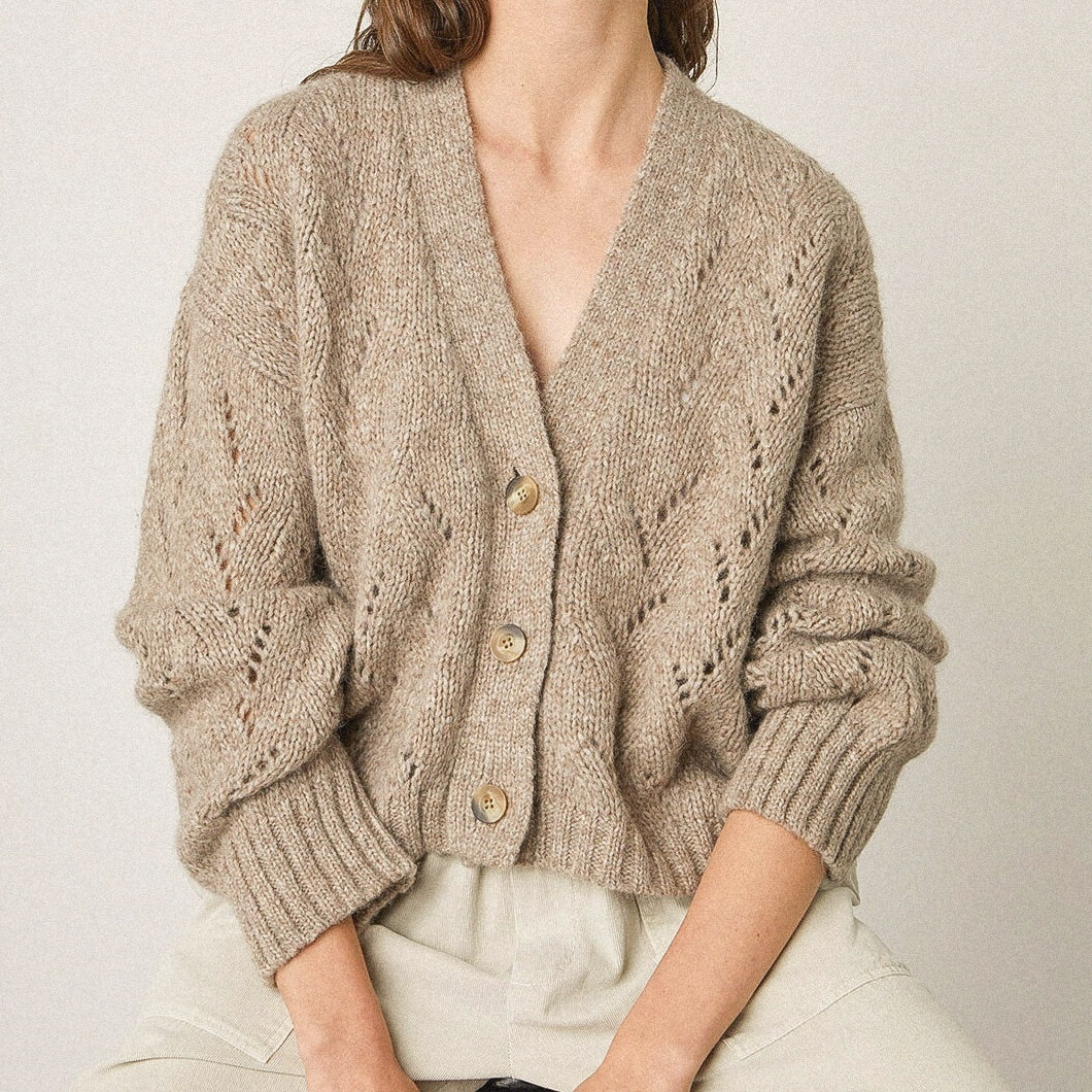 К двум джемперам посчитала нужным приобщить кардиган с интересным и очень простым в исполнении ажурным узором. Именно узор привлёк мое внимание.