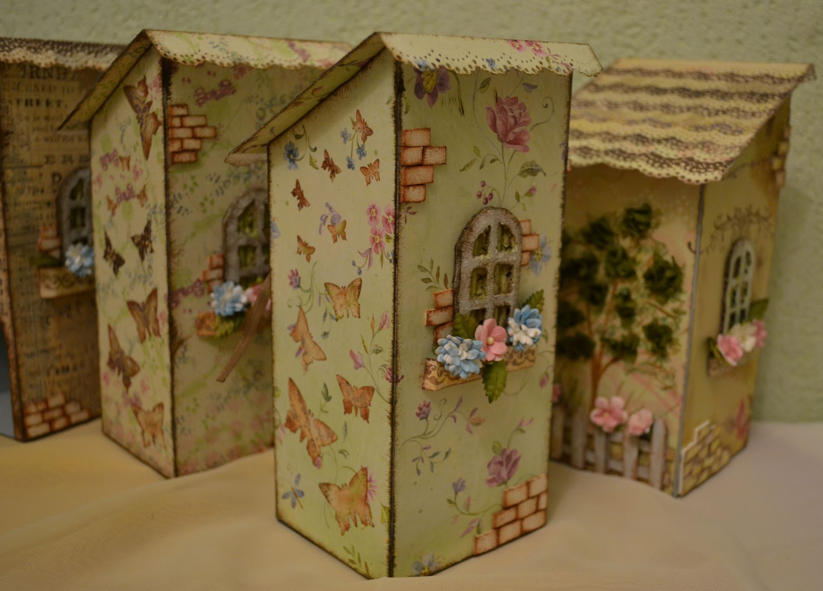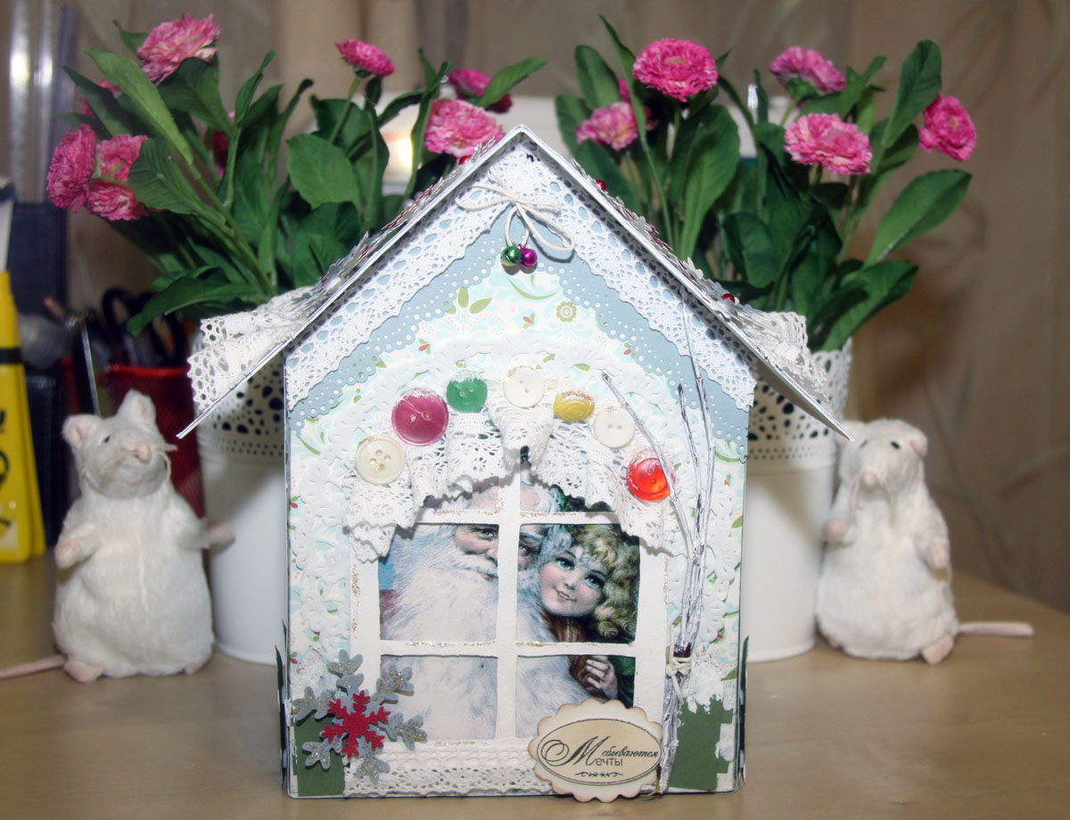 а у одного домика крыша упрямо топорщилась вверх немного, пришлось ленточкой привязать)))