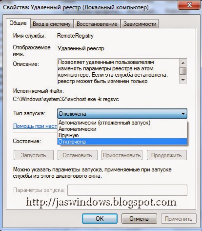 Вот на скрине пример одной службы по отключению удаленного реестра.