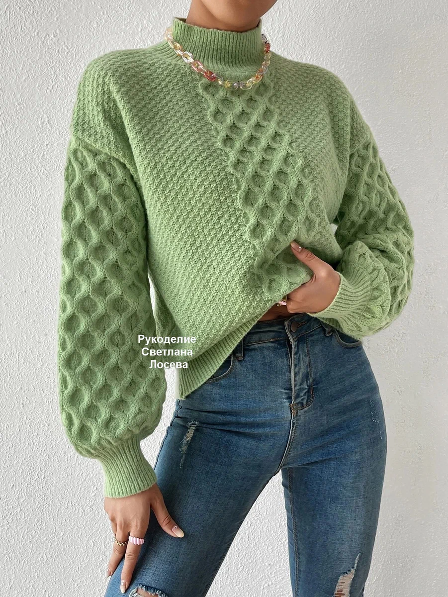 Дорогие рукодельницы! В этой модели джемпера используется очень популярный "ячеистый" узор. Всегда восхищалась простотой и логичностью этого узора. На фоне мелкозернистой "путанки" эффект рельефа проявляется необычайно эффектно!