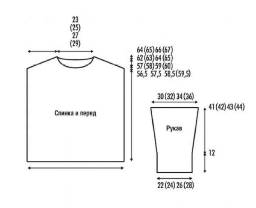 Обратите внимание, что рельефным узором выполняются все детали изделия. Перед и спинка вяжутся одинаково с разницей в глубине выреза горловины.