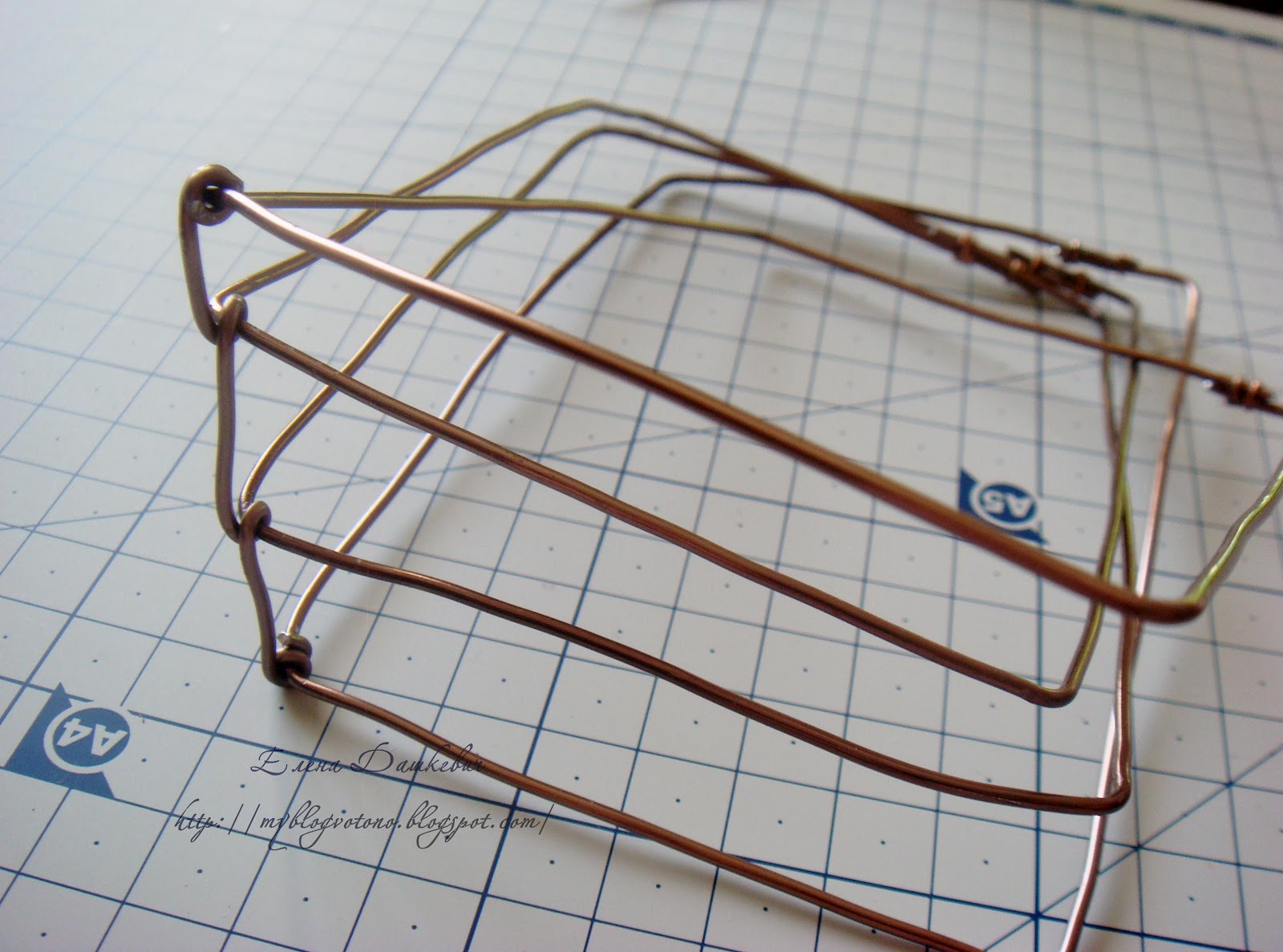 Сначала создаем каркас нашей корзиночки - формируем из проволоки несколько одинаковых прямоугольников. У меня они небольшого размера 11 на 8 см.