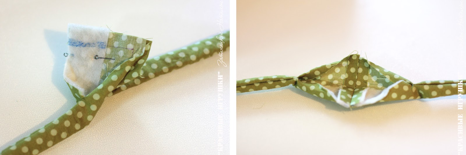Выворачиваем наизнанку, разутюживаем и набиваем холлофайбером или любым другим наполнителем: