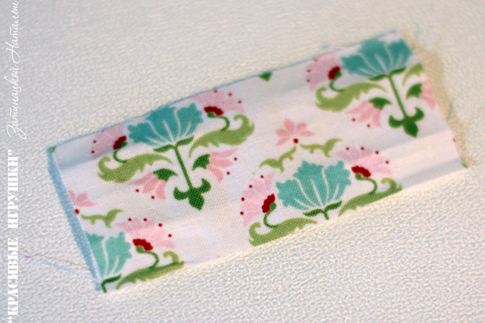 "Петлю" складываем пополам и загибаем края еще раз внутрь (примерно на 0,5 см). Разутюживаем. Прострачиваем по краям, отступив на 1-2 мм:
