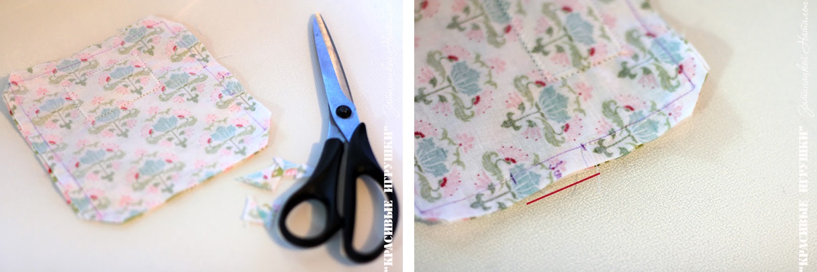 Срезаем уголки кармашка в 1-2 мм от строчки: