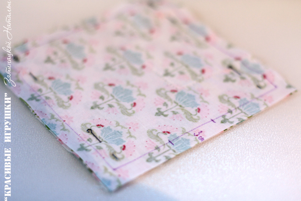 Карман сумки. Размер кармашка 12 х 12 см. Рисуем квадрат на изнаночной стороне ткани Lining Pink, вырезаем его с учетом припусков на швы 0,5-1 см.