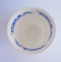 Дальше, когда краска высохнет, мы украшаем наш стаканчик. Я решила сделать очень просто и приклеила кружево, плоские цветочки, и в серединку каждого добавила бусинку.