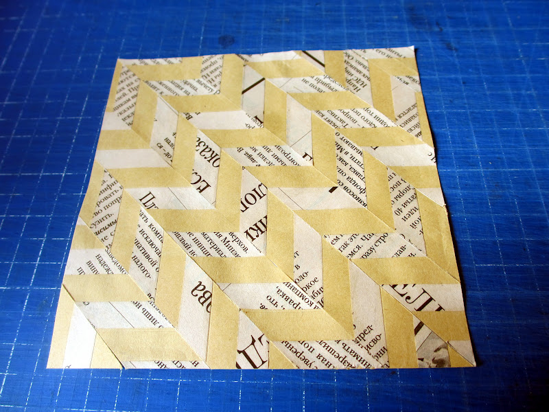 То же самое можно сделать, сразу предварительно нарезав исходные треугольники на ленты одинаковой ширины, поменять местами эти ленты через одну и склеить. Результат будет тот же. Главное – не запутаться :)