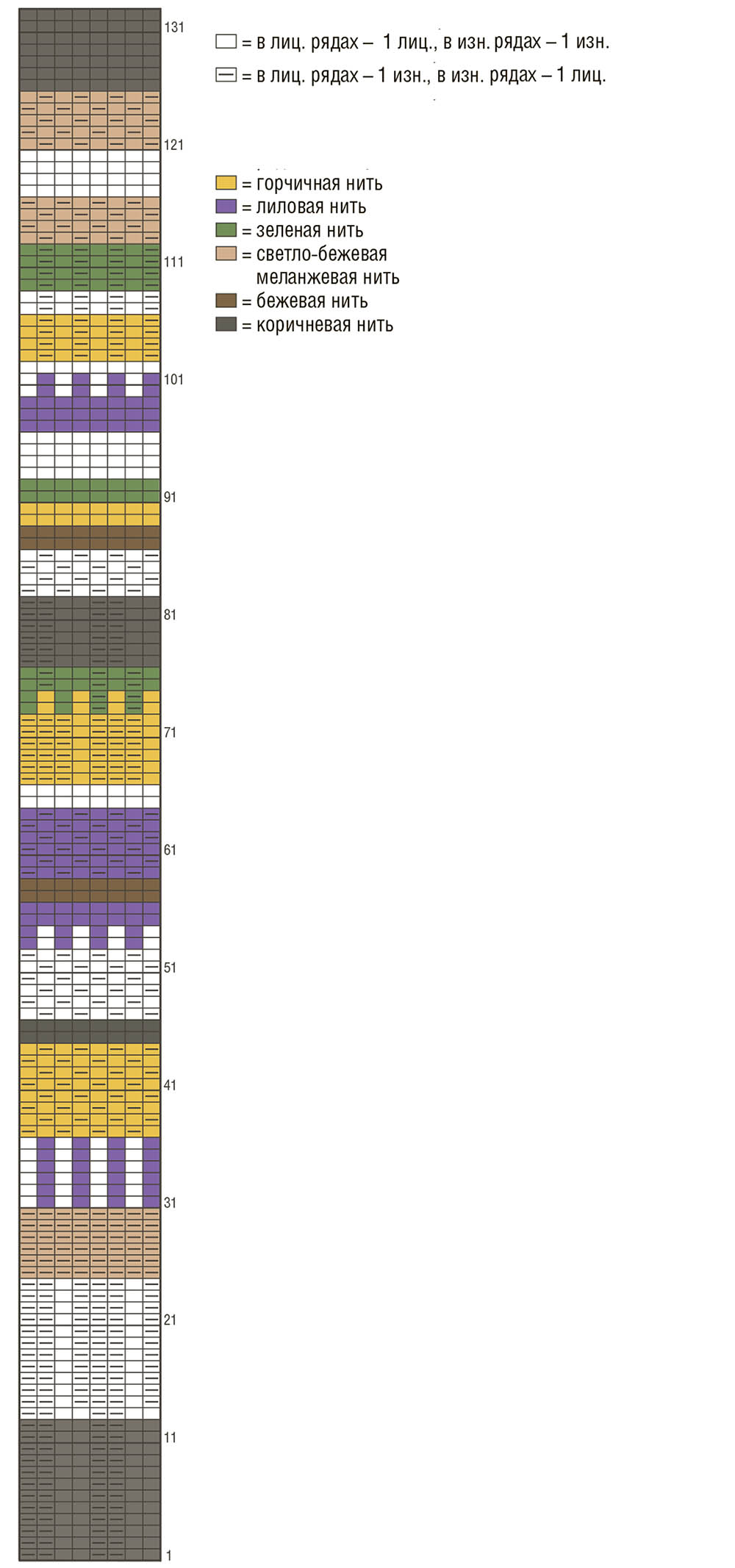 Распределение цветов, а также лицевых и изнаночных петель —см. Условные обозначения.