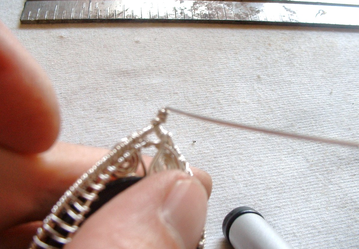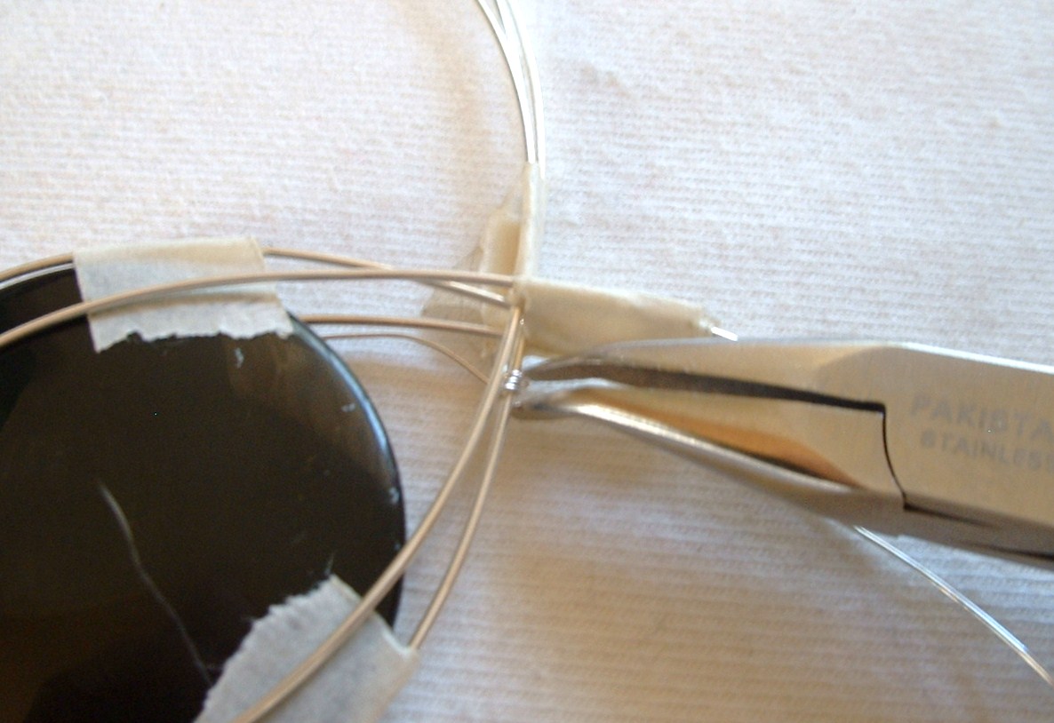 Чтобы начать работу с рамкой Я образую 20g проволоки вокруг внешнего края фокальной. Оставьте только волос расстояние между проводом и фокусным для упаковки. Отрежьте провод, оставляя по крайней мере, 2-дюймовый хвост сверху.