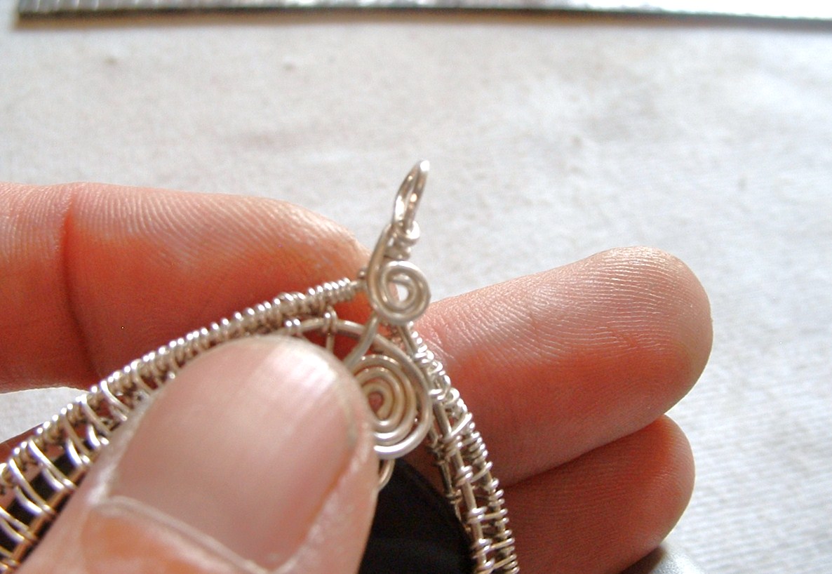 Итак, что делать с уродливым месте? Малый нуля / чип / странные месте буровой от фокусного? Вы можете покрыть дальнейшего украшения. Лично я не буду продавать эту часть, потому что в (большой) уродливое пятно, но это было удобно использовать для этого урока. Чтобы скрыть уродливые месте я сделал 'S' форма вихря. То же процесс, как указано выше. Вырезать 4 дюйма кусок проволоки 20g и сделать маленькие петли на каждом конце. Один указал на один направлен вниз. Тогда я очень ослабил внешний подряд на каждый вихрь, чтобы иметь возможность использовать 24g провода обернуть его на внутренний каркас, чтобы покрыть уродливые пятна. Я сделал 3 обертки вокруг каждой точки подключения и отрезал и спрятал концы.