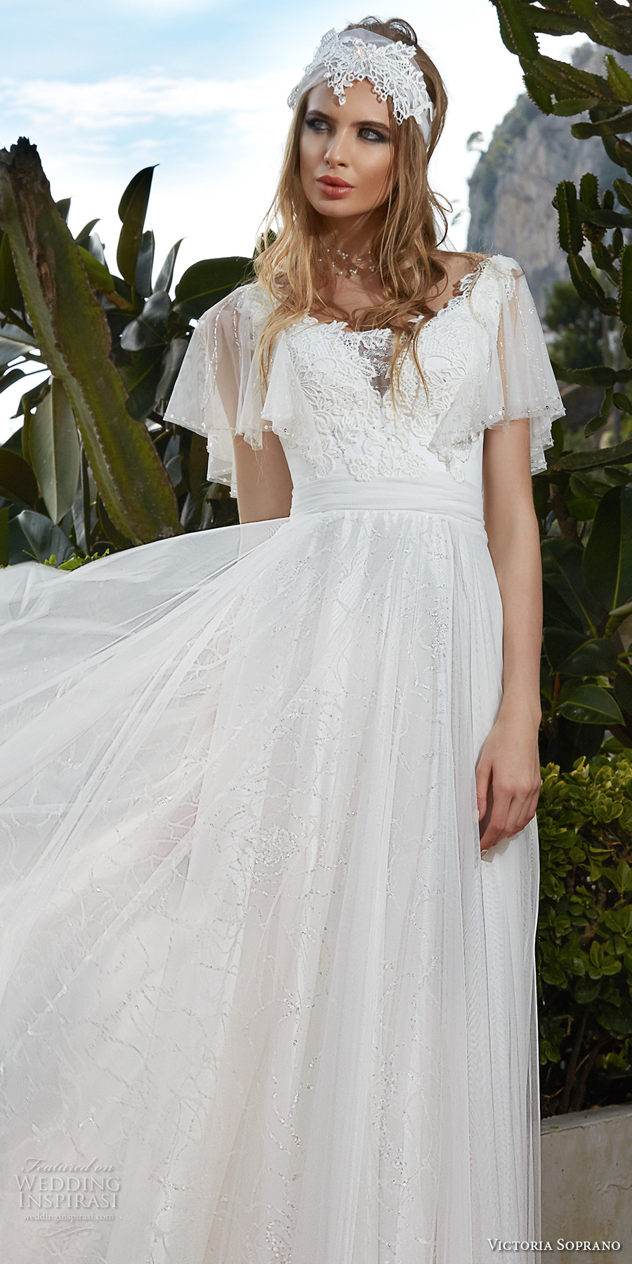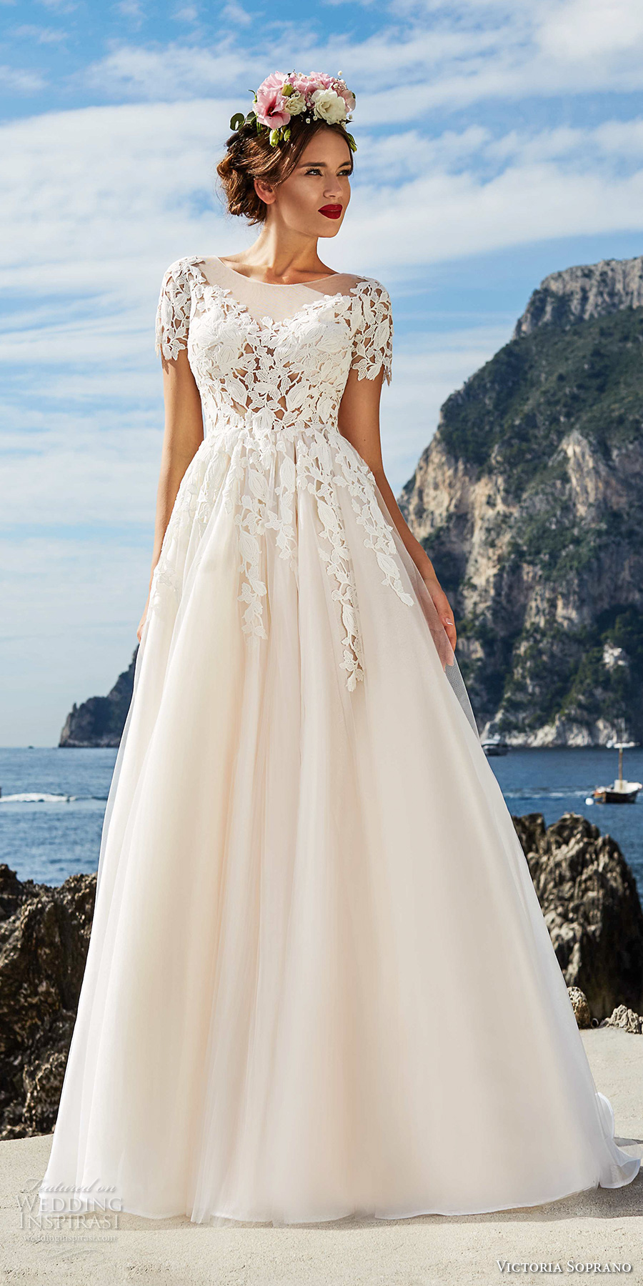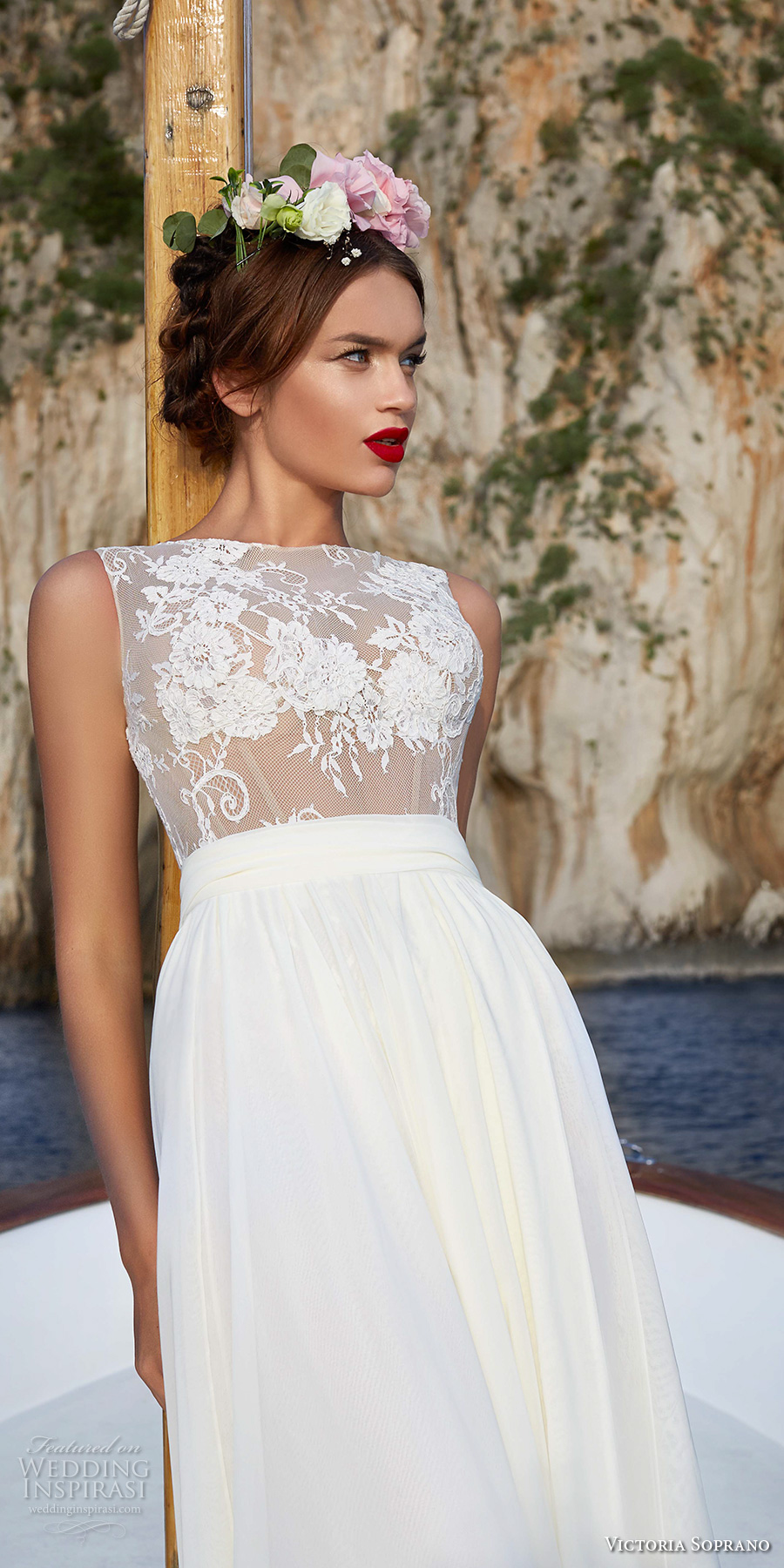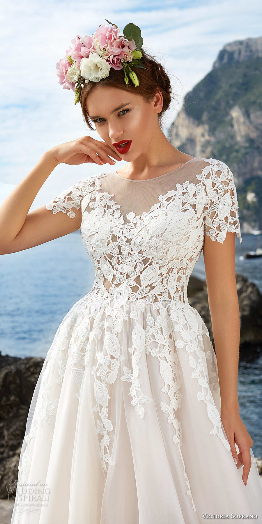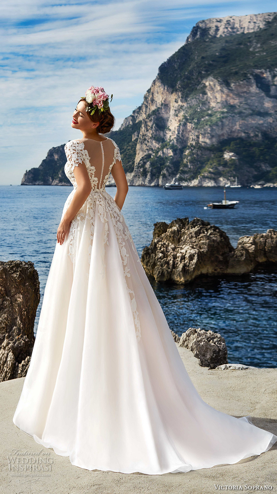 Базирующаяся в Париже компания Victoria Soprano предлагает потрясающие свадебные платья с модными силуэтами и деталями ручной вышивки нежным бисером, пайетками и оригинальными камнями Swarovski. Свадебная коллекция “Capri” 2017 года представляет совершенно уникальный выбор свадебных образов: повседневные брюки и кружевные ансамбли без косточек, ультраромантичные бальные платья, а также шикарные жакеты и пальто.