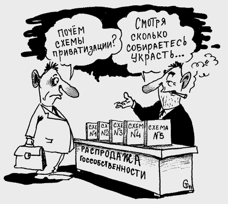 Основной задачей приватизации, проводимой Правительством В. С. Черномырдина, являлась ликвидация всего лучшего и самого перспективного, крепящего Россию, приумножающего ее мощь. Вот почему сразу же под нож приватизации пошли стратегически важные для страны, ключевые для оборонной промышленности Смоленский авиационный завод, Рыбинский моторостроительный завод, Рыбинское КБ моторостроения, Самарское госпредприятие «Старт», Уфимское моторостроительное производственное объединение, Уралмашзавод, ЛНПО «Пролетарский завод», производственное объединение «Знамя Октября», ЦНИИ «Румб»,