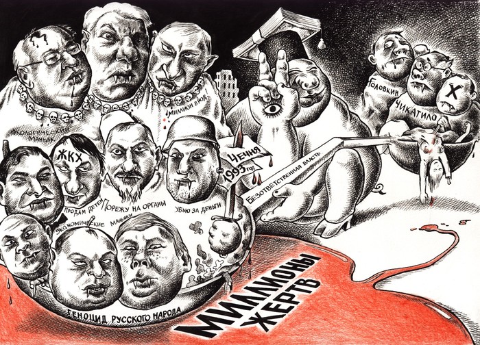 Миллиарды от смерти не спасают, - постигая эту банальную истину на судьбах своих подельников, олигархи перестают верить и в то, что мертвые сраму не имут, а потому силятся отработать технологию переделки грабителей, подлецов, предателей в героев, подвижников, благодетелей, спасителей России. Опробовали технологию отбеливания на Ельцине, теперь модернизируют её на Черномырдине, перекодируя память народа беломраморными памятниками, бронзой мемориальных досок, многотомьем елейных книг, многосерийностью фильмов, названиями улиц, площадей, ледоколов. Были «Ленин» и «Россия», через год пойдёт льды ломить «Виктор Черномырдин». На подхвате сотни ваятелей с виршами, мольбертами, теле-, кинокамерами, готовые за хорошие деньги хоть чёрту присобачить ослепляющей белизны крылышки и сияющий нимб над головой. Хотите посмотреть, как это делается, сыщите фильм Сергея Брилёва «ЧВС», выставленный на экран Первым телеканалом, убедитесь, как просто, оказывается, из преступника, нанёсшего стране урон страшнее гитлеровского нашествия, слепить образ спасителя России. Получается, что и чёрного кобеля можно отмыть до сияющего бела.