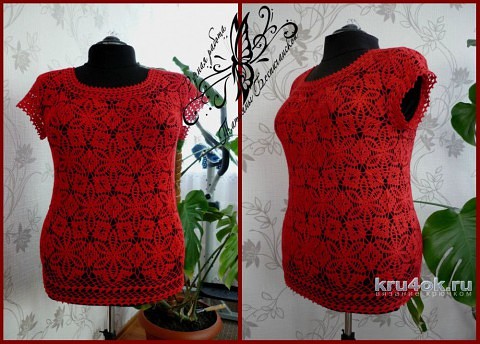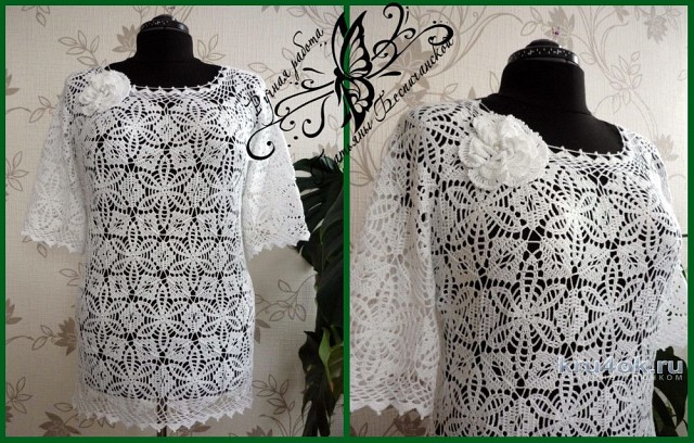 БЛУЗА "СНЕЖНЫЕ УЗОРЫ" АЖУРНЫМИ МОТИВАМИ. КРЮЧОК Ирина-ажур