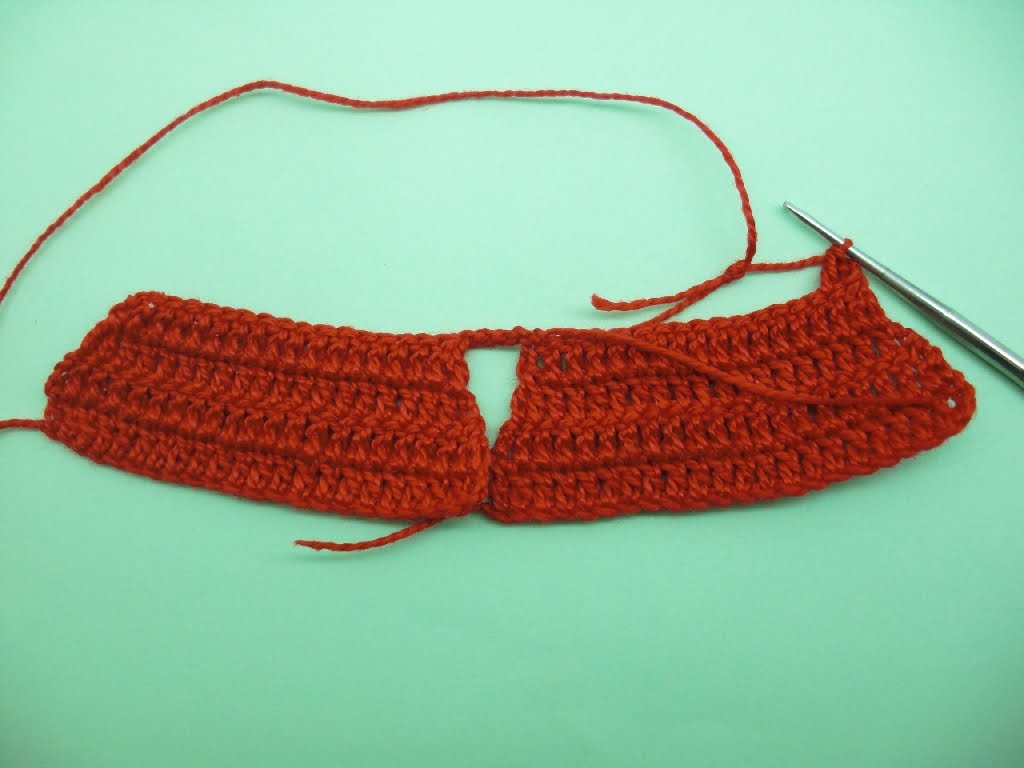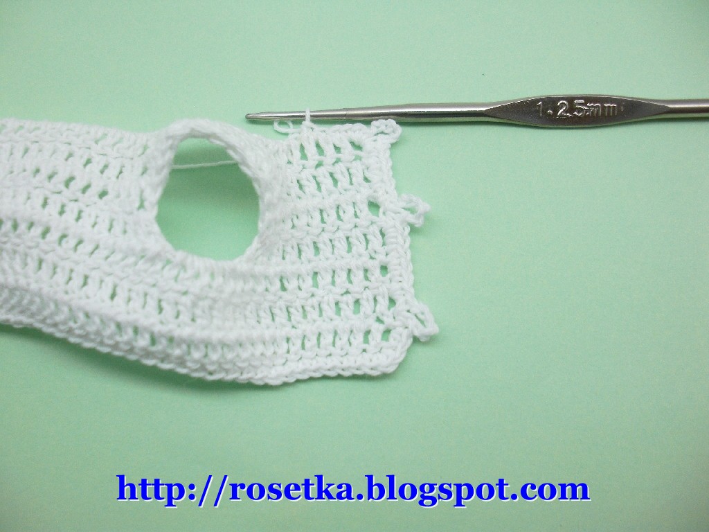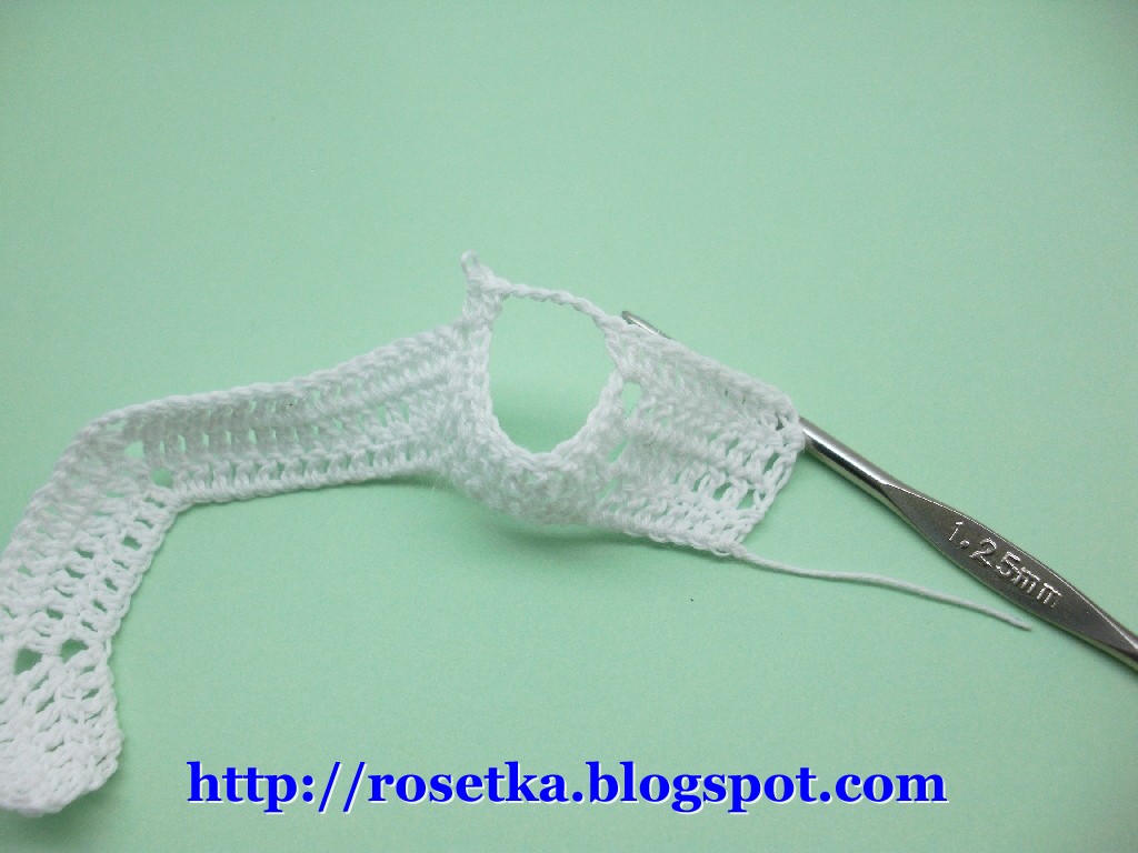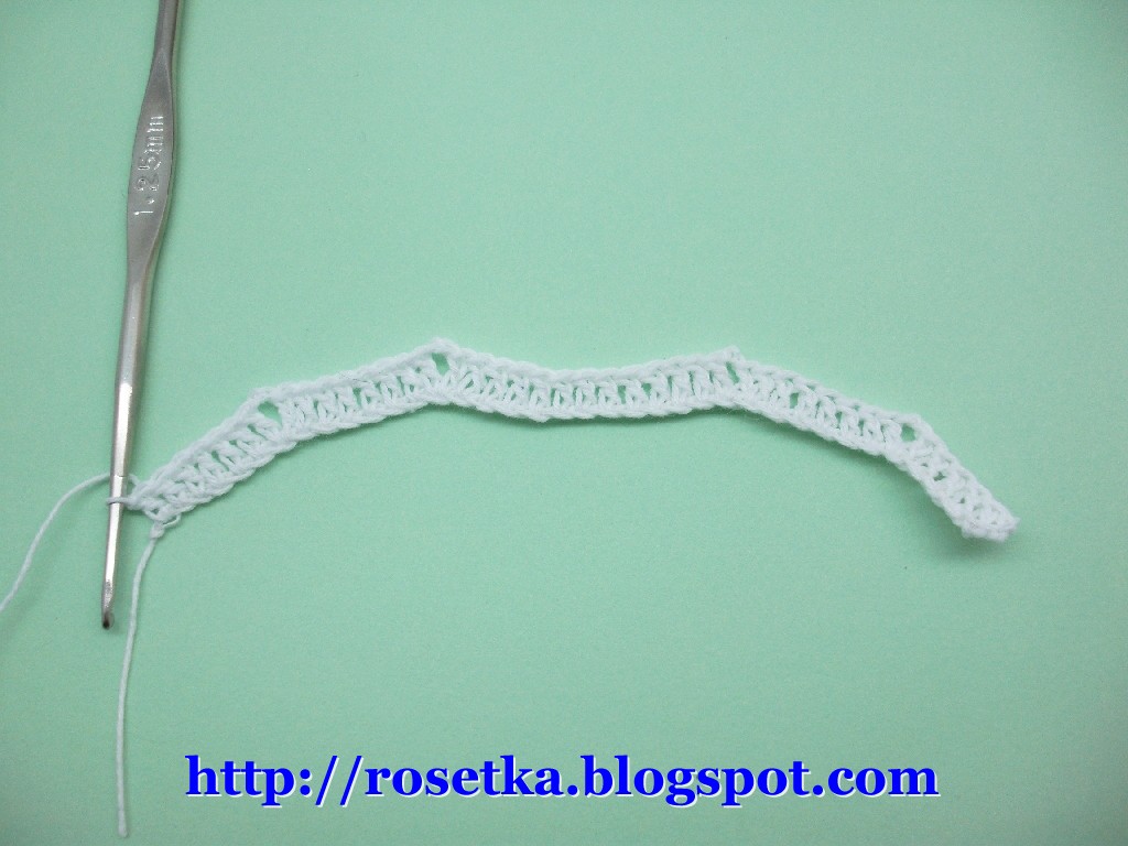 После этого вяжем до желаемой длины (у меня это три ряда) столбиками с накидом.