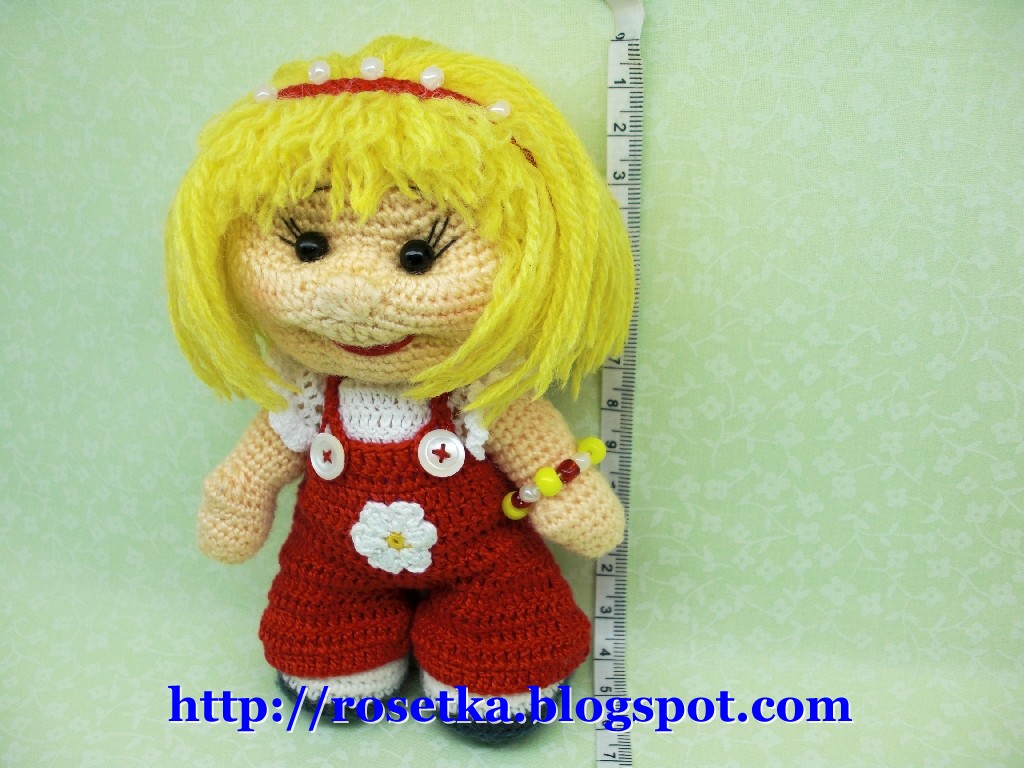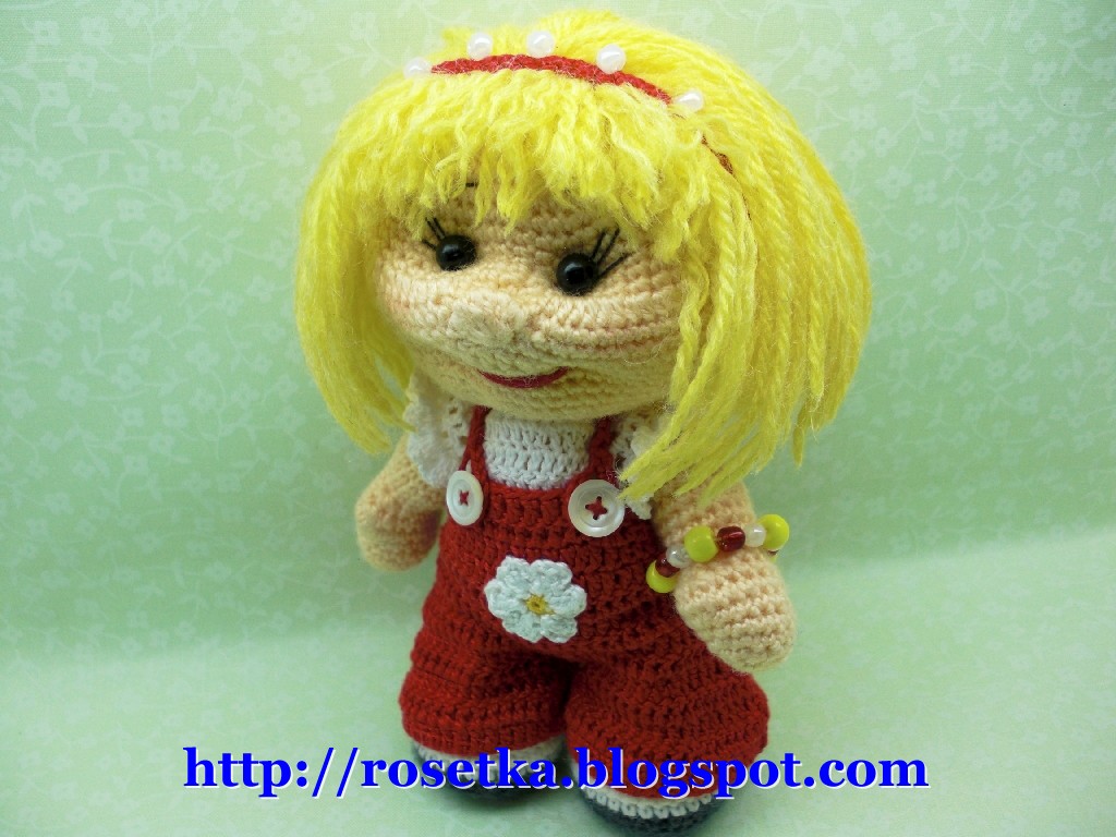 Встречайте еще одну Куклёну – в штанишках! Связана она точно так же как и первая с косичкой Те же самые материалы - Семеновская Каролина, 100% акрил,427м/100г, крючок №1,75.