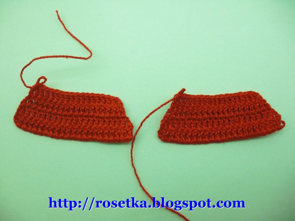 Закончив первую штанину( 4 ряда), нить отрезаем.