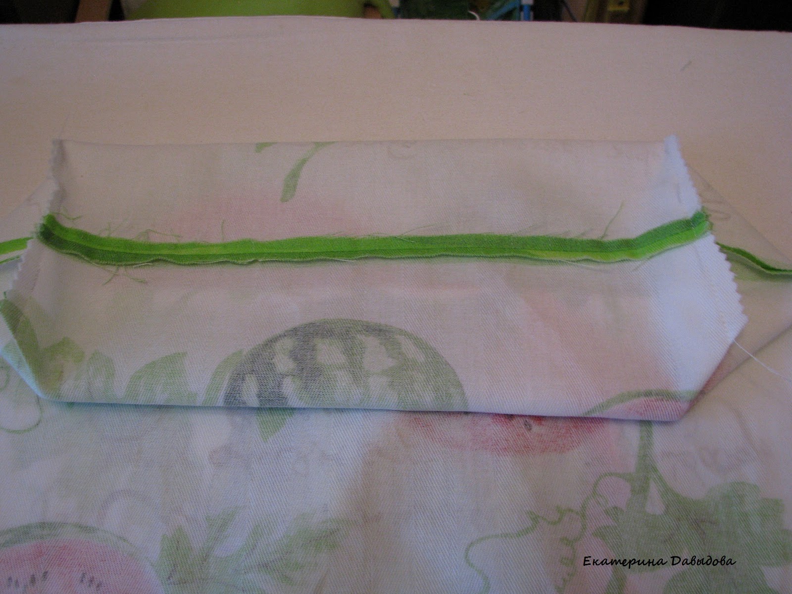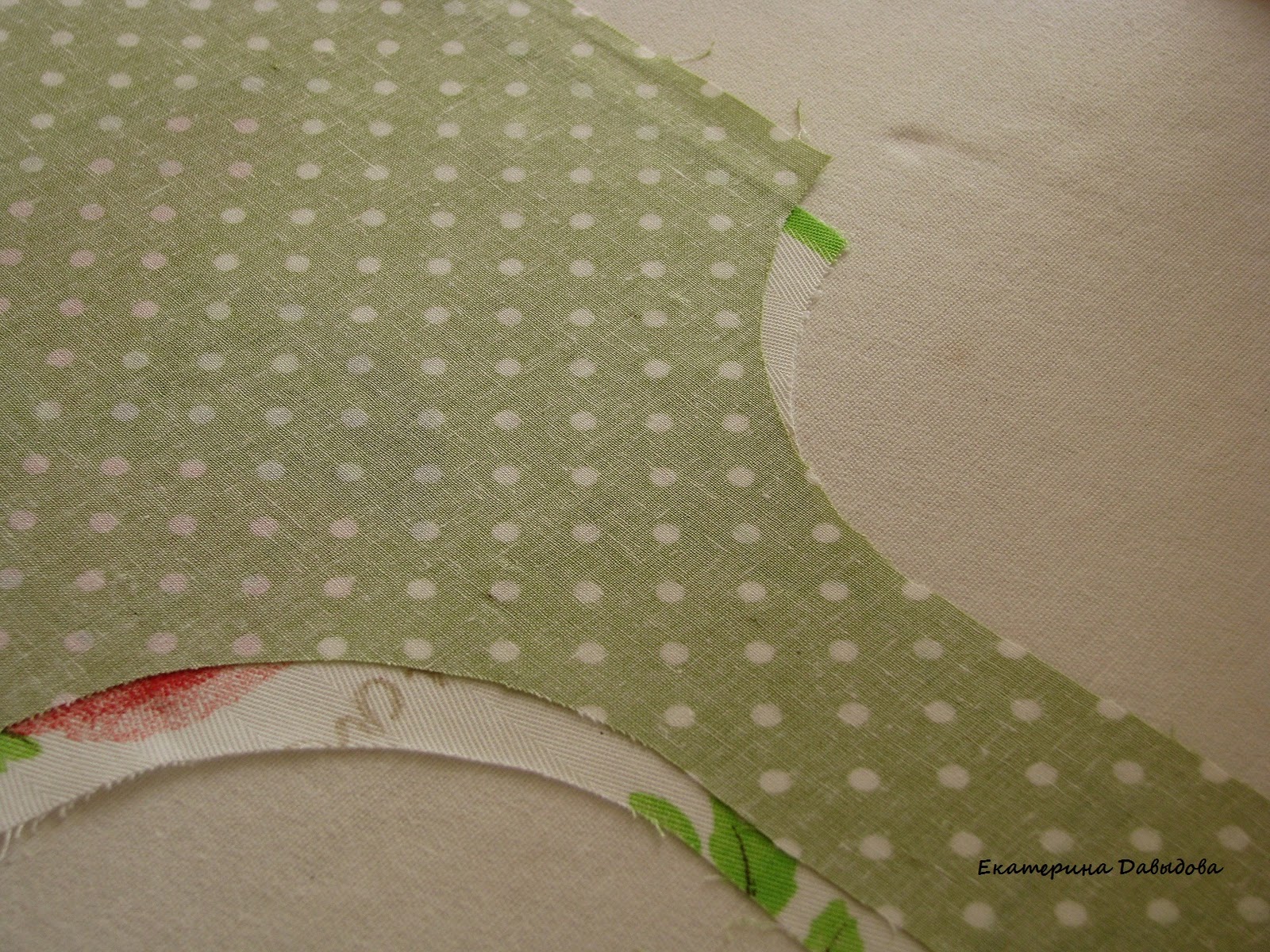 прошиваем, отрезаем уголки, в закругленных местах надрезаем ткань