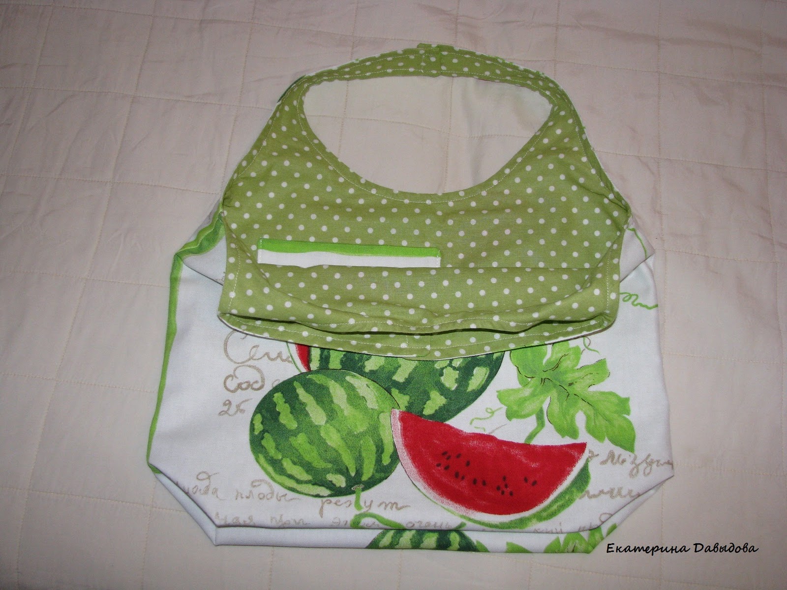 Прошиваем, оставляя с одной стороны в подкладочной ткани, см. 10 не прошитыми, для возможности вывернуть сумку.