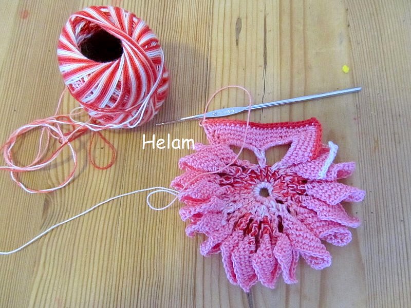 3-ий ряд. *12 возд. п., ст. б/н* в каждый столбик предыдущего ряда ( 20 лепестков).