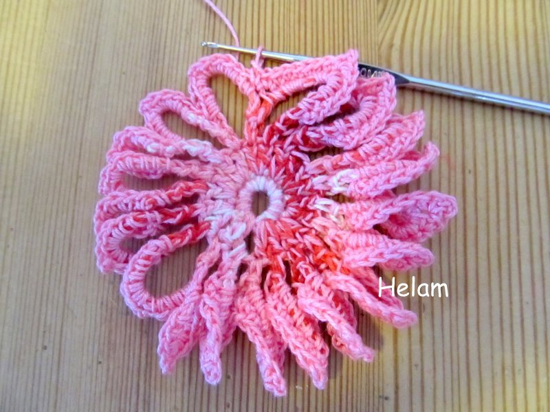 Если вы хотите более нежный цветок, то лепестки вязать в 4-9 рядах ст. с/н вместо ст. б/н.