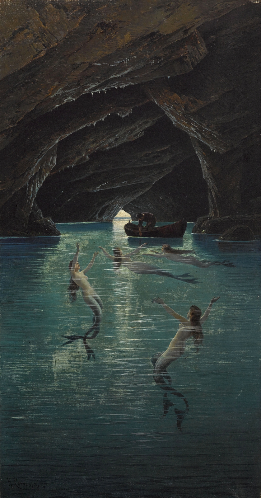 Рыбак и русалки в Голубом гроте на Капри (A fisherman and mermaids in the Blue Grotto on Capri) Частное собрание деталь